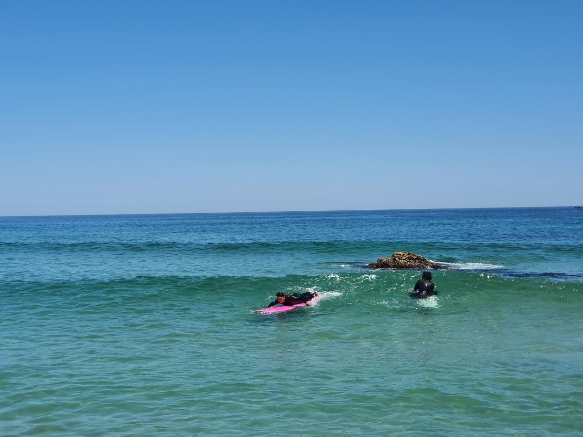 - 바다에 입수하여 실제 파도 위에서 실습